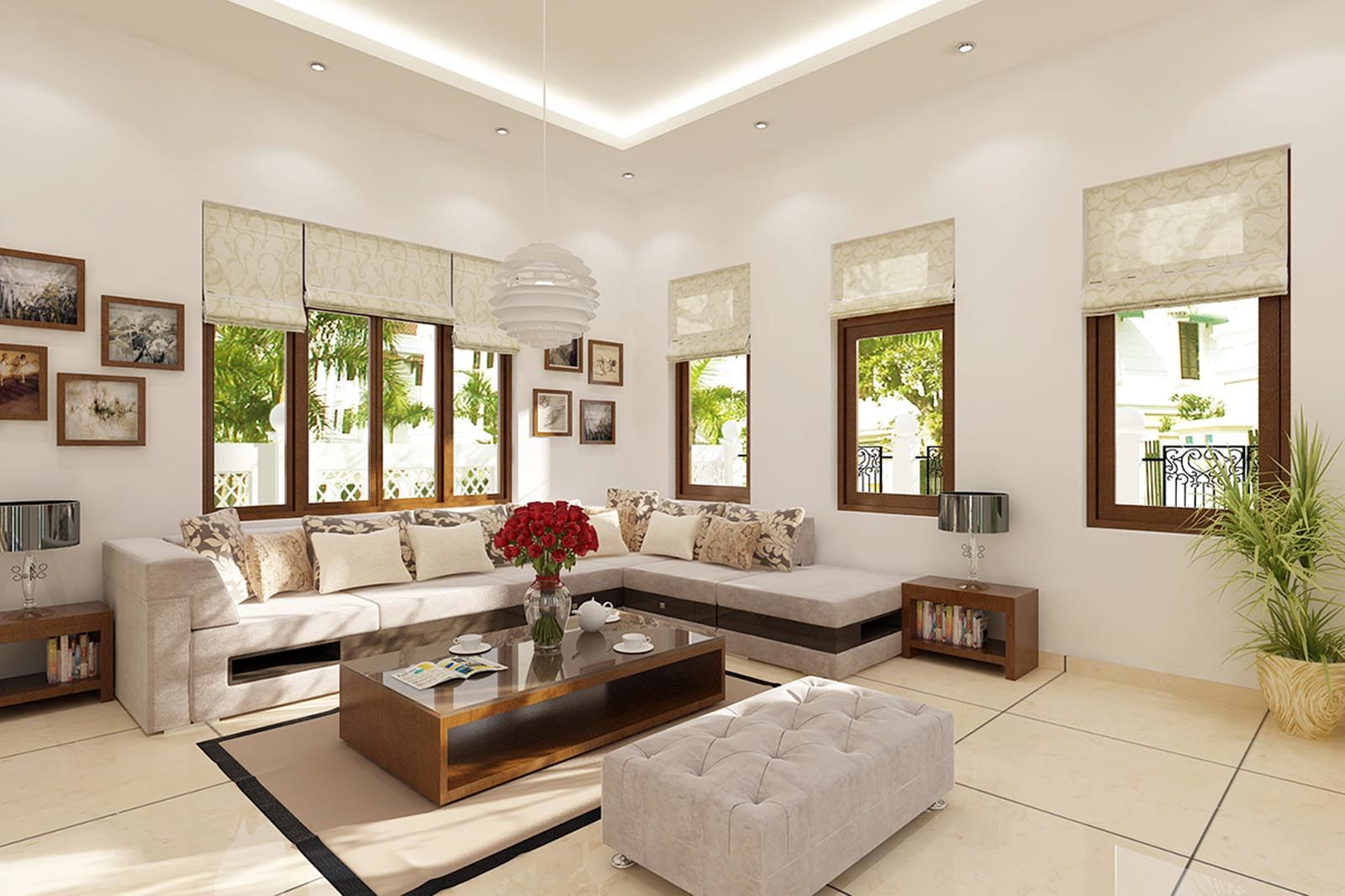 Trong phòng khách nên có cửa sổ lớn giúp không gian sáng sủa, thoáng đãng để tiếp nạp được sinh khí vào nhà.