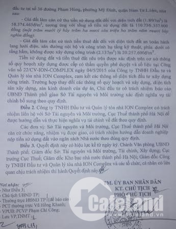 Quyết định phê duyệt của UBND TP.Hà Nội về việc phê duyệt giá đất đối với 2 dự án.