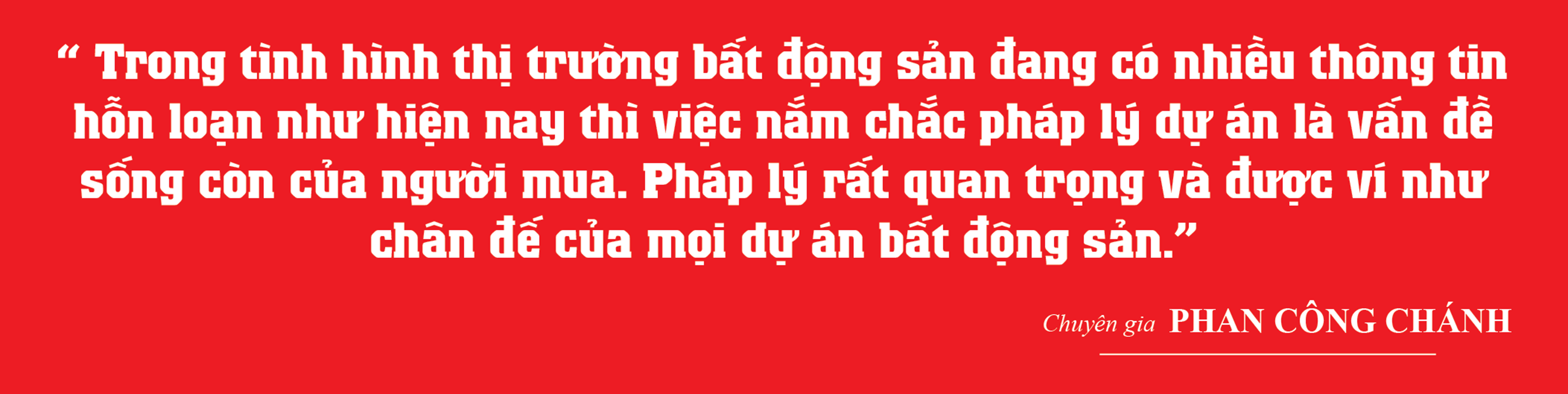 Ông Chánh kết luận, trong tình hình thị trường bất động sản đang có nhiều thông tin hỗn loạn như hiện nay thì việc nắm chắc pháp lý dự án là vấn đề sống còn của người mua. Pháp lý rất quan trọng và được ví như chân đế của mọi dự án bất động sản.