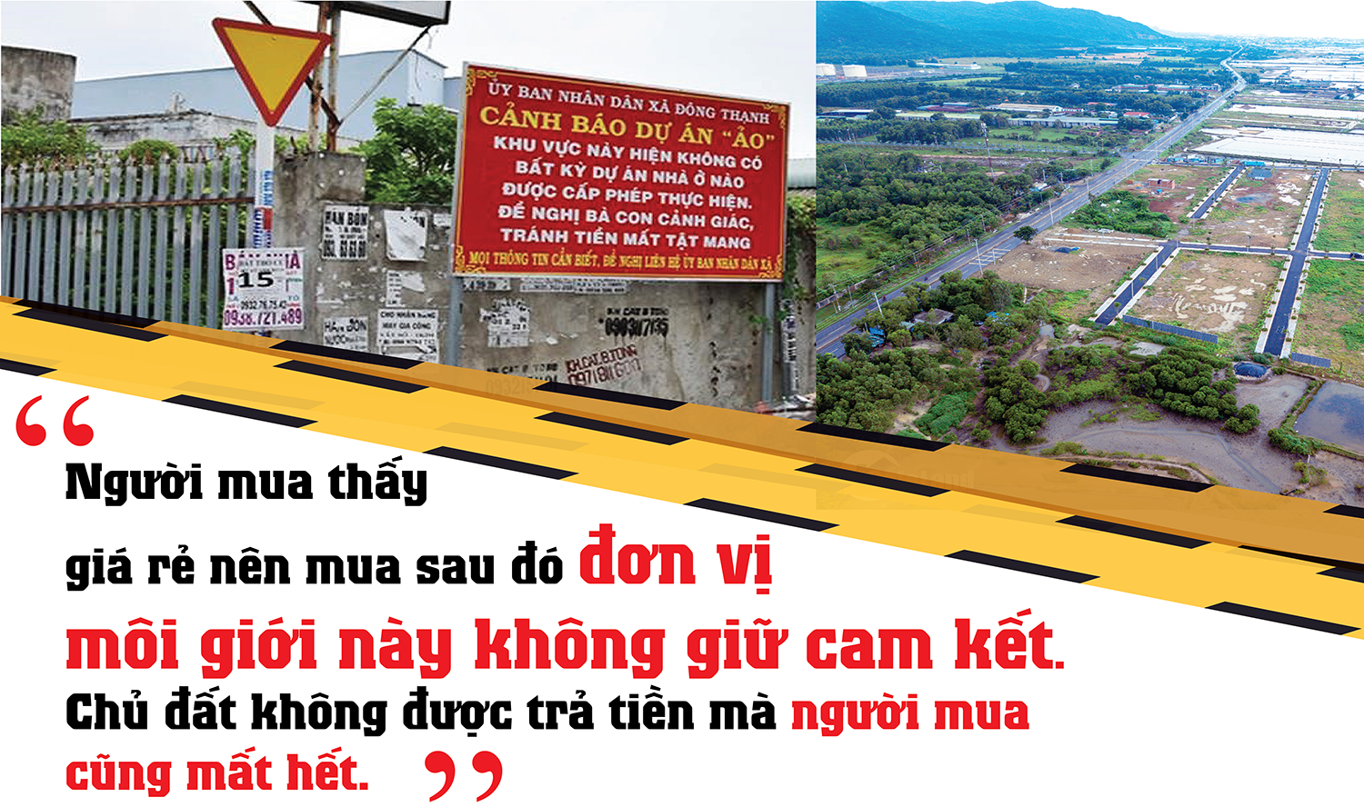 Theo một nhà đầu tư, hiện nay có rất nhiều người mua bất động sản chỉ quan tâm đến lợi nhuận. Nhiều người biết rõ dự án không đầy đủ pháp lý, có nguy cơ bị lừa đảo nhưng vẫn xuống tiền vì thấy lợi nhuận quá cao. Thậm chí, có người khi đã sa lầy thì thay vì tố cáo hành vi sai trái của chủ đầu tư thì họ lại tìm mọi cách để bán lại nền đất cho người khác.