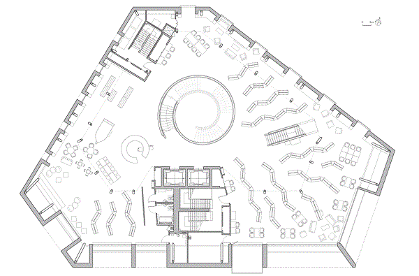 Nhìn một cách hình dung hóa, Thư viện Canada Water giống như một 'ziggurat' ngược – kiểu như một kim tự tháp bậc thang lật chân nằm cạnh một con sông.