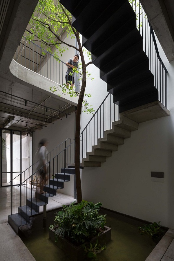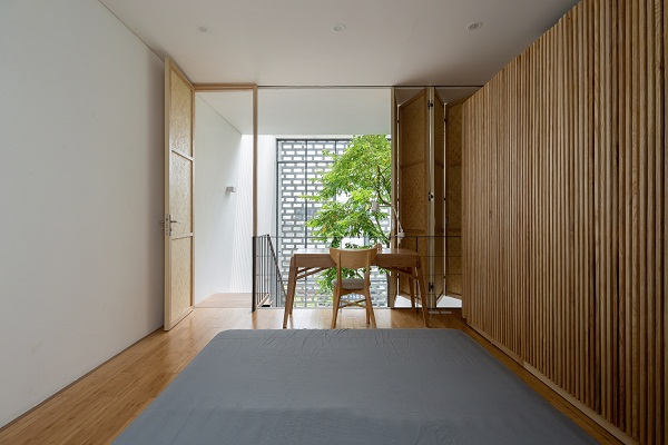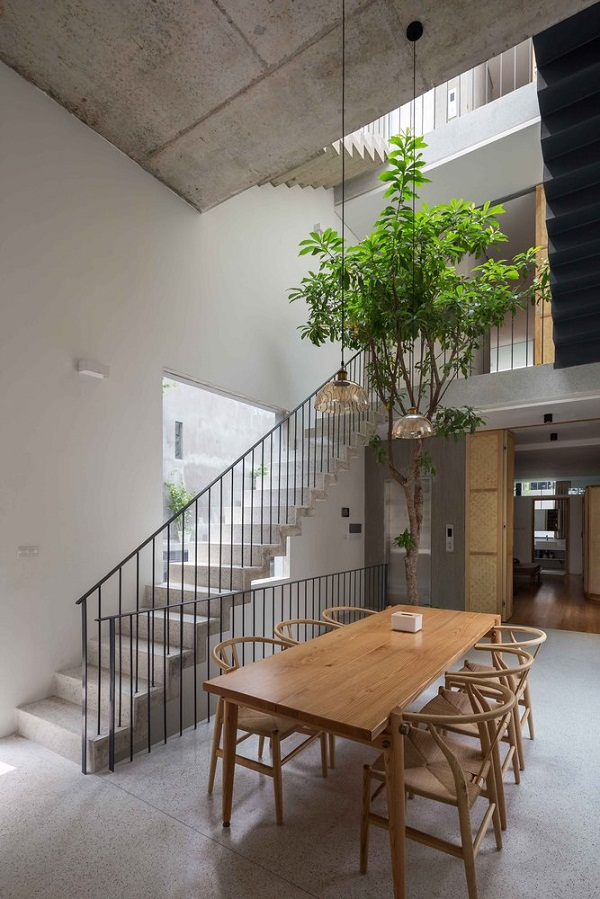 Lấy cảm hứng từ những ngôi nhà truyền thống cũ của Hà Nội, không gian tràn ngập ánh sáng tự nhiên và thông gió, nhờ vào sân bên trong.