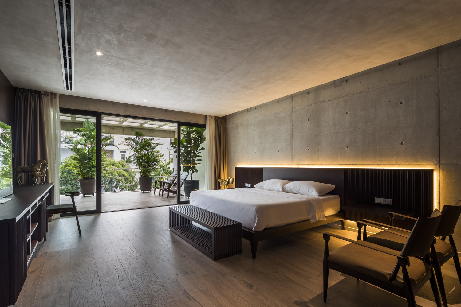 Trong các công trình trước đây thường sử dụng hệ thống dầm, cột bê tông để kết nối các không gian khác nhau ngoài trời, nhưng với dự án này, kiến trúc sư vẫn sử dụng hệ thống bê tông này không chỉ là cấu trúc mà còn là không gian phân vùng và hướng đến tính thẩm mỹ.