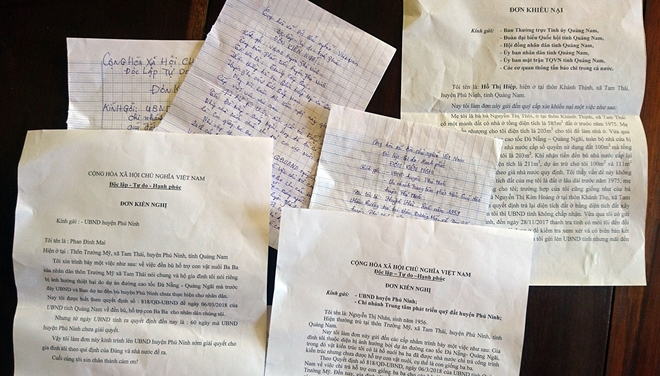 Bức xúc trước việc chưa được nhận tiền đền bù, nhiều hộ dân xã Tam Thái, huyện Phú Ninh bị giải tỏa phục vụ dự án cao tốc Đà Nẵng-Quảng Ngãi tiếp tục gửi đơn khiếu nại, đơn kiến nghị đến các cơ quan chức năng tỉnh Quảng Nam.