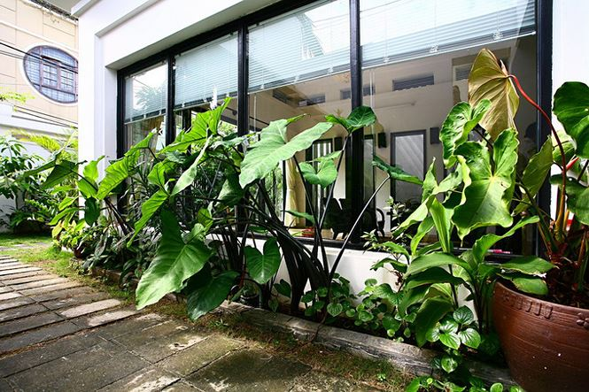 Việc bố trí sân vườn xung quanh nhà đã mang đến không gian một điểm nhấn xanh mướt hương vị thiên nhiên.