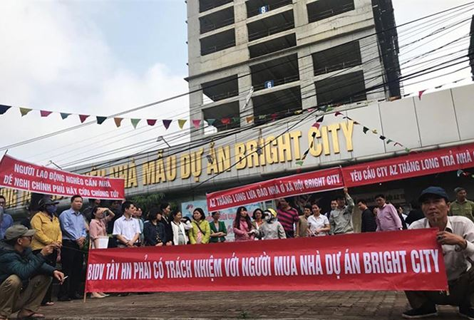 Ngày 19/3, hàng trăm cư dân mua nhà tại Tổ hợp nhà ở xã hội và Dịch vụ thương mại AZ Thăng Long (tên thương mại là Bright City) đã tập trung căng băng rôn kêu cứu tại cổng dự án. Theo Hợp đồng mua bán căn hộ giữa Cty TNHH Bánh kẹo Thăng Long - Chủ đầu tư (CĐT) Dự án nhà ở xã hội Bright City với khách hàng, dự kiến quý IV/2017 khách hàng sẽ nhận bàn giao nhà, nhưng tới thời điểm hiện tại, 4 tòa nhà thuộc Dự án này đã dừng thi công.