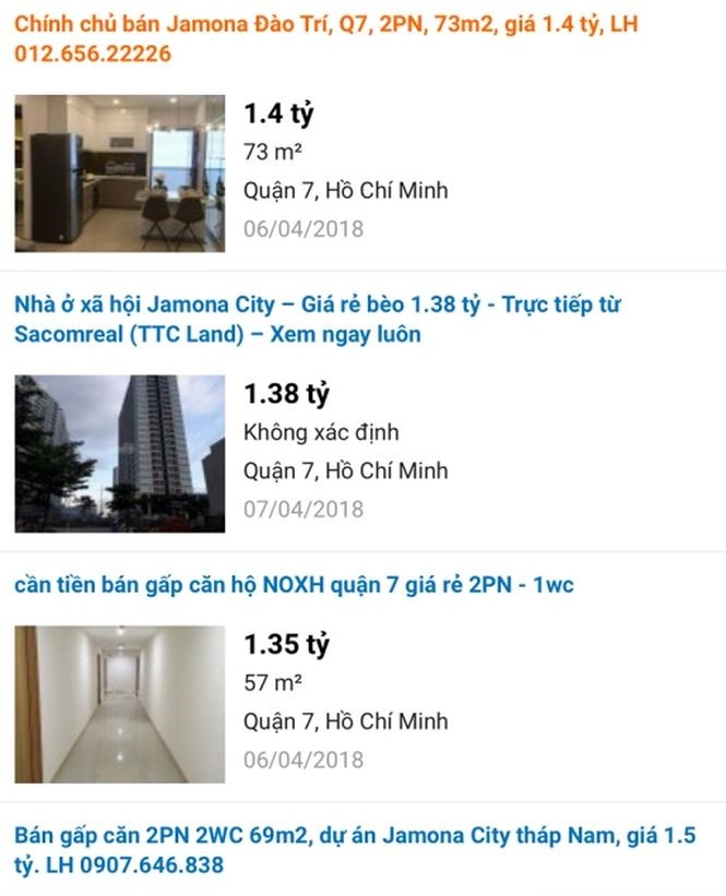 Chỉ cần gõ “bán căn hộ nhà ở xã hội” cho ra cả nghìn kết quả. Trong đó, nổi bật là các căn hộ nhà ở xã hội thuộc dự án Jamona Apartment trên đường Đào Trí, quận 7, TP.HCM của Công ty CP Địa ốc Sài Gòn Thương Tín – nay là TTC Land, một dự án vừa được bàn giao đầu tháng 3/2018 thuộc loại không được phép giao dịch mua bán. “Nhà ở xã hội Jamona City – Giá rẻ bèo 1.38 tỷ - Trực tiếp từ TTC Land”; hay “Cần tiền bán gấp căn hộ nhà ở xã hội quận 7 giá rẻ 1.35 tỷ…”- những lời rao như vậy ngập tràn trên mạng.