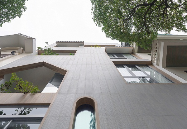Bên trong những khối hộp tối giản và hiện đại này là các block không gian truyền thống với nhiều mái nhà, cổng nhỏ, mái hiên trong lõi được ví như 1 tuyến phố thành chiều thẳng đứng.