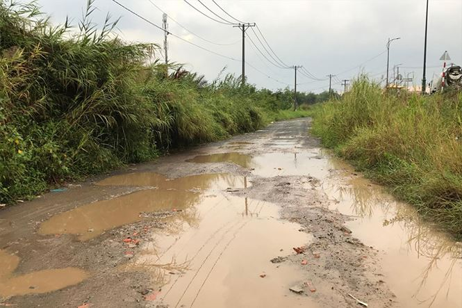 Còn khoảng 60 hộ dân không di dời, ở trên bán đảo Thủ Thiêm (Ảnh: Đường vào khu ở tạm của dân lầy lội khi mùa mưa đến).