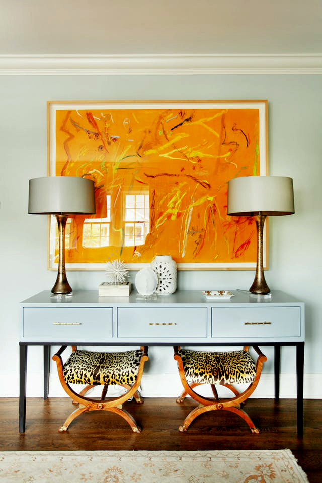 Màu cam là màu đem lại sự ấm áp và chào đón, thích hợp nhất để trang trí tại phòng khách. Trong khi đó, màu xanh dương nhạt lại tượng trưng cho sự tươi mát, thúc đẩy sáng tạo. Kết hợp hai gam màu này với nhau sẽ mang đến không gian hài hòa và hiện đại cho phòng khách, phòng ăn.