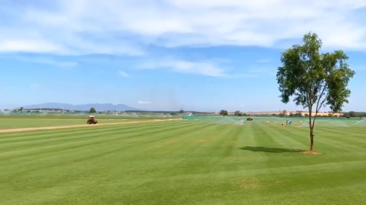 Hiện sân golf 36 lỗ đang trong giai đoạn chăm sóc cỏ, phần lớn còn lại mới chỉ đang trong giai đoạn san lấp mặt bằng và dự án cũng đã có biệt thự mẫu ngay tại khuôn viên dự án.