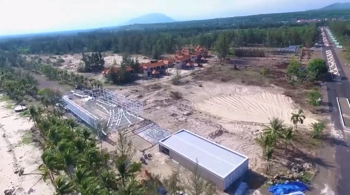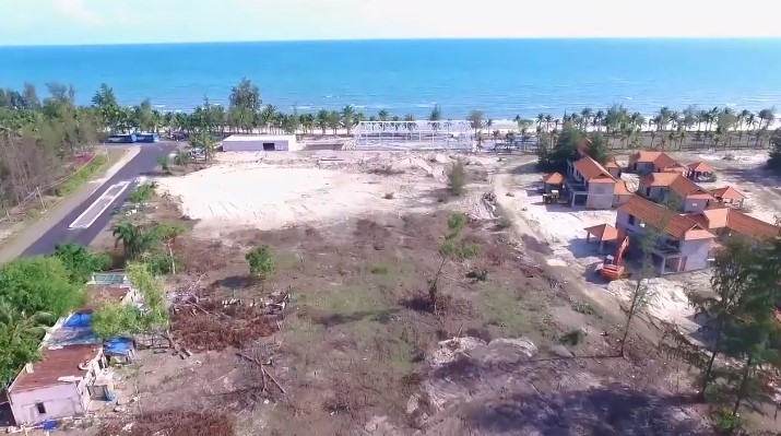 Hiện dự án mới chỉ cho máy móc thi công một số căn biệt thự sát mặt biển, còn lại gần như chỉ là bãi đất trống.
