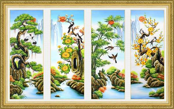 Tranh trúc báo bình an tứ quý “Tùng – cúc – trúc - mai” là tác phẩm hội tụ 4 loại cây cao quý: tùng – cúc – trúc – mai hoặc mai – lan – cúc – trúc. Bức tranh được nhiều người yêu thích không chỉ bởi vẻ đẹp cao cấp, sang trọng làm mãn nhãn, mà còn bởi chứa đựng nhiều ý nghĩa nhân văn tốt đẹp đáng để suy ngẫm, chiêm nghiệm và học hỏi.