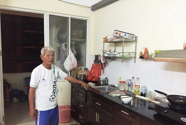 Theo hẹn, chúng tôi đến khu tạm cư để gặp ông Ti. Trong căn phòng 70m2, ông Ti cho biết căn hộ hiện có 3 người. Con gái ông và đứa cháu ngoại hiện bán nước cách khu tạm cư chừng một cây số để kiếm sống, còn ông sức khỏe yếu nên chỉ giúp được việc nhẹ trong nhà.