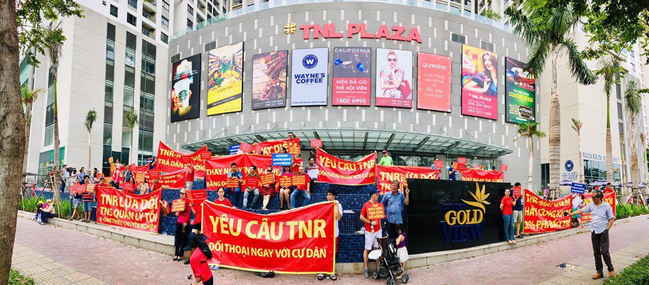 Trước đó, vào tháng 12/2018, cư dân The Goldview đã tập trung căng băng rôn phản đối chủ đầu tư với những nội dung: “Yêu cầu đối thoại với Chủ tịch Công ty May diêm Sài Gòn”, “TNR cắt bớt thiết bị so với hợp đồng Goldview”, “Phản đối TNR thu phí cao-Quản lý tồi”, “Yêu cầu chủ đầu tư cải thiện tình hình an ninh và an toàn phòng cháy chữa cháy”, “Căn hộ cư dân The Goldview thiếu nhiều thiết bị so với hợp đồng”.