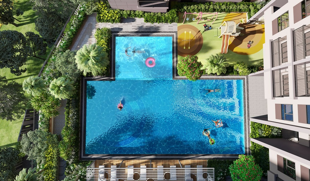 Hồ bơi trên cao với hai khu dành cho người lớn và trẻ em