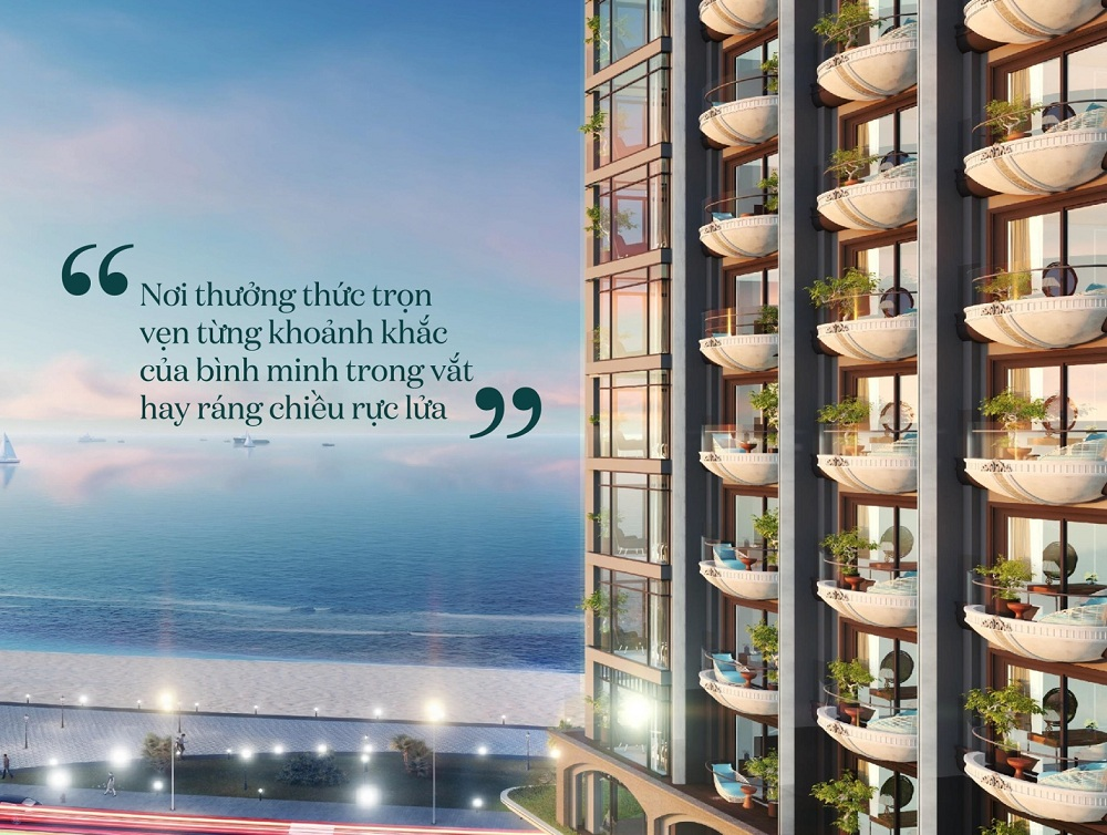 Mọi hướng nhìn của căn hộ du lịch 100% hướng biển, được thiết kế những ô cửa lớn và ban công rộng rãi không chỉ mang không khí mát mẻ và ánh sáng tự nhiên đến mọi ngóc ngách của căn phòng, mà còn giúp du khách lắng nghe được tiếng sóng vỗ, ngắm nhìn toàn thành phố và tận hưởng kỳ nghỉ một cách trọn vẹn nhất.