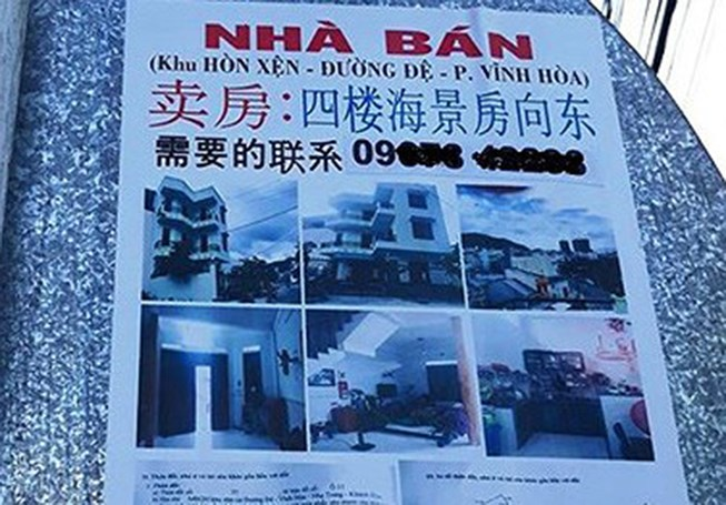 Quảng cáo mua bán nhà đất bằng tiếng Trung xuất hiện ở TP Nha Trang.
