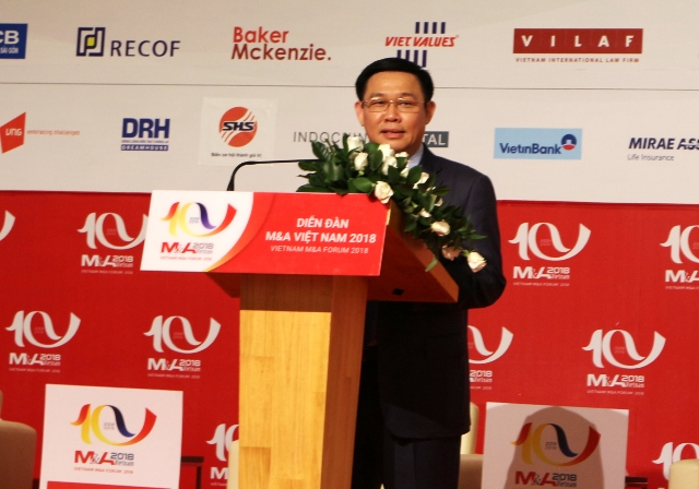 Phó Thủ tướng Vương Đình Huệ phát biểu tại diễn đàn M&A Việt Nam 2018. Ảnh: Thanh Thịnh