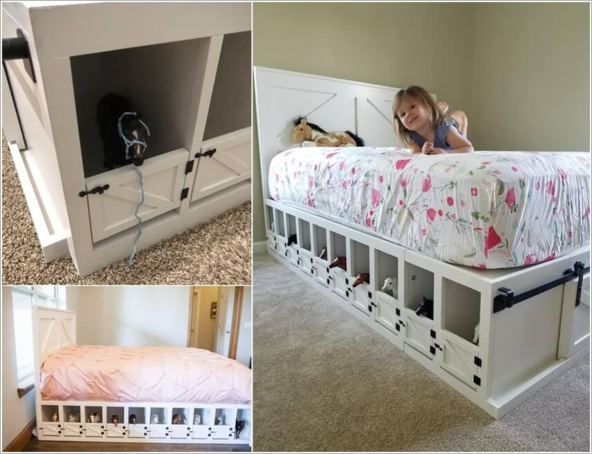 Thiết kế một giường ngủ với một quầy hàng đồ chơi là những chú ngựa đáng yêu.
