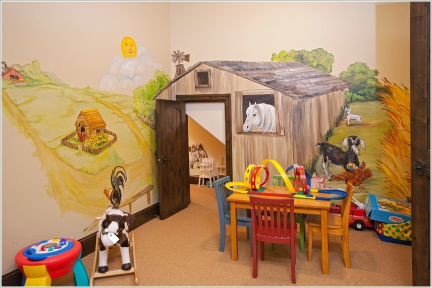 Căn phòng bé với bức họa đồng quê tuyệt đẹp.