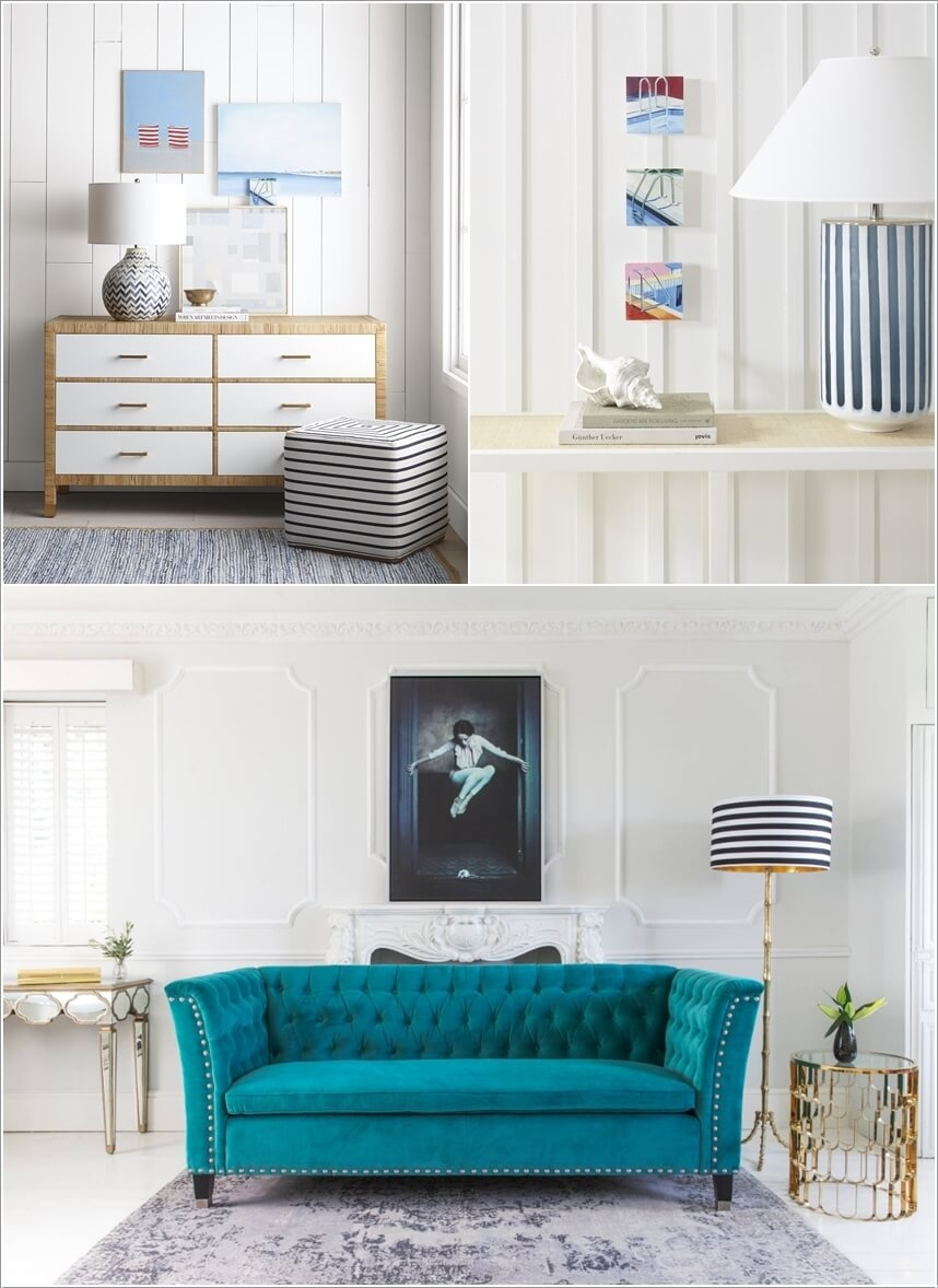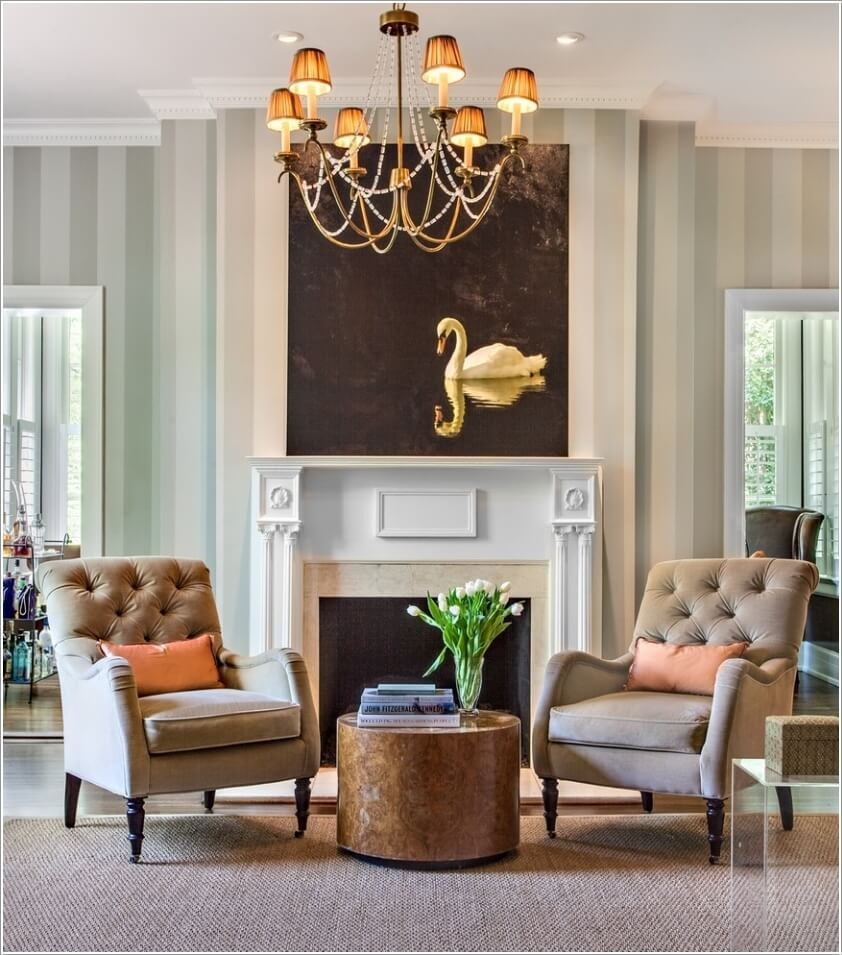 Các họa tiết kẻ sọc ở phía sau tường có thể giúp cho nội thất trở nên nổi bật hơn. Không cần trang trí quá nhiều họa tiết mà không gian nhà bạn vẫn trở nên sang trọng và hài hòa hơn.