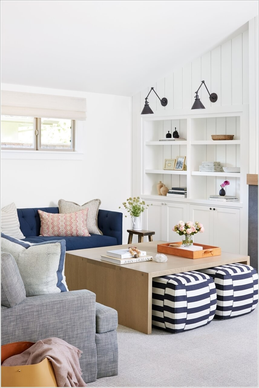 Họa tiết sọc có thể giúp không gian có thêm chiều sâu. Đặc biệt với một phòng khách có sự hạn hẹp về không gian thì họa tiết kẻ sọc có thể tạo điểm nhấn nổi bật cho phòng khách.