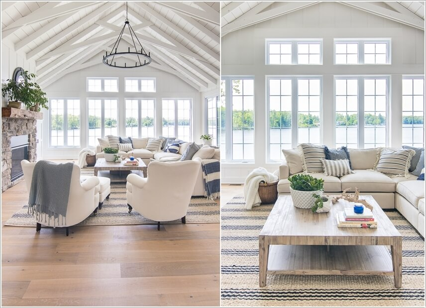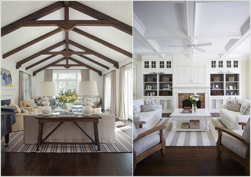 Mở rộng không gian bằng cách trang trí cho trần nhà bằng kẻ sọc, tạo hiệu ứng thị giác hình học trong nội thất, phá cách ấn tượng trong phòng khách.