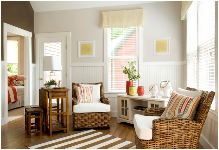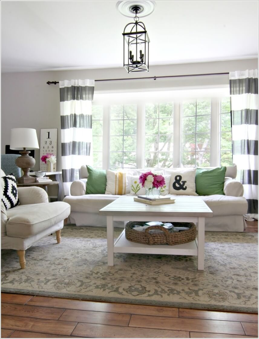 Điểm chút họa tiết sọc ngang nơi rèm cửa sổ.