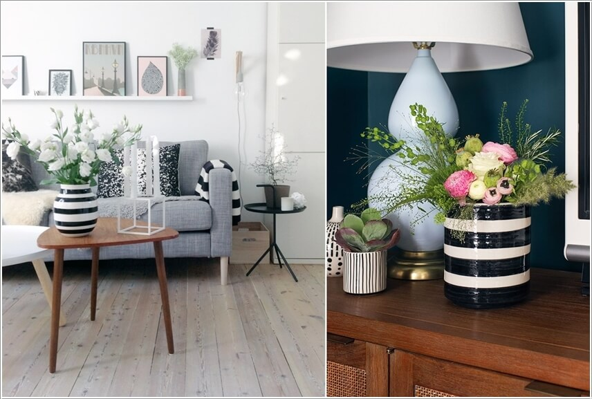 Bạn cũng có thể chỉ cần thêm họa tiết sọc nhỏ như tại bình cắm hoa này.
