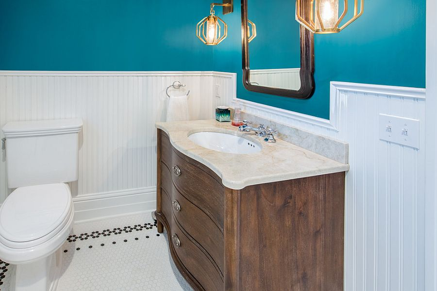 Khi sử dụng màu ngọc lam trong phòng tắm, bạn phải đảm bảo ánh sáng đầy đủ và đồng đều.