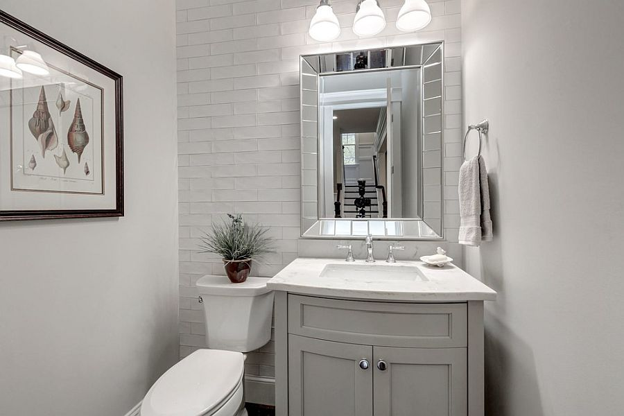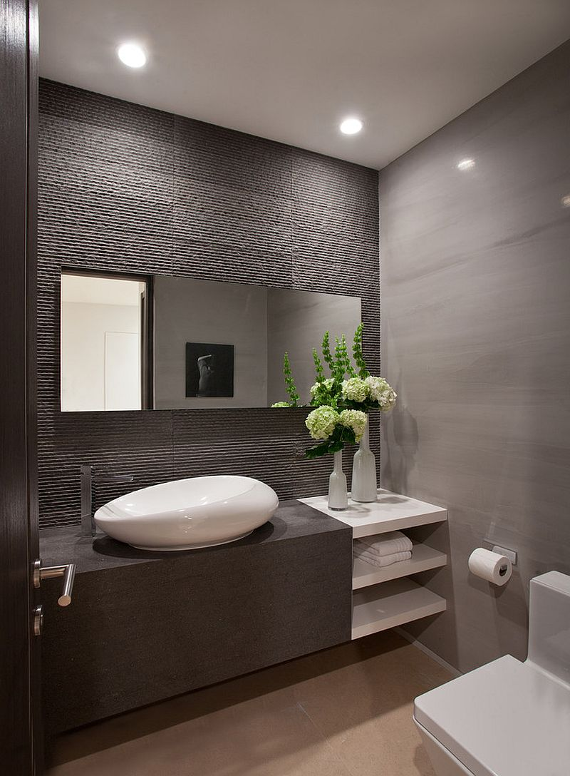Bạn có thể thử nghiệm nhiều sắc độ khác nhau của màu xám vào không gian phòng tắm.