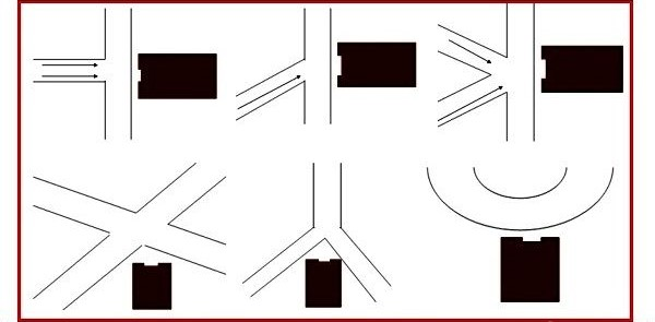 Ngôi nhà nằm ngay ngã ba hay ngã tư đường, cửa chính lại nằm đối diện với con đường lớn, theo phong thủy được gọi là “nhất tiễn xuyên tâm” hay “trực xung”. Điều này sẽ mang lại nhiều tai họa cho gia chủ, bị ảnh hưởng bởi luồng khí đâm trực diện vào nhà, như một mũi tên xuyên tim. Bên cạnh đó, nếu là nhà chung cư cũng kỵ chọn hành lang có thế “trực xung” đâm thẳng vào căn hộ.