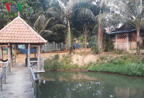 Trang trại của ông Nguyễn Hồng Thái trồng cây cao su, cây ăn quả và xây dựng chuồng trại gần hồ nước.