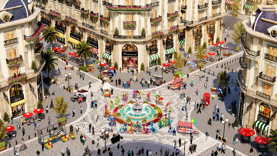 Giao nhau giữa hai tuyến phố chính là quảng trường lễ hội với đài phun nước trung tâm mang biểu tượng thần vệ nữ sẽ là nơi diễn ra các lễ hội văn hóa, ẩm thực, đại nhạc hội… Đây cũng là điểm đến lý tưởng cho các nhóm bạn, gia đình trẻ và du khách.