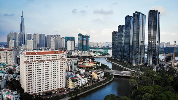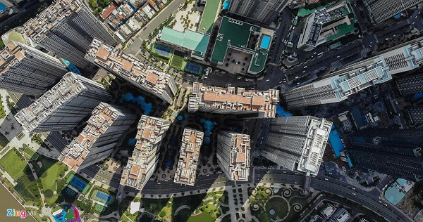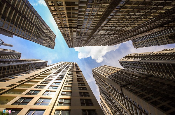 Những khu căn hộ chen chúc tạo nên hình ảnh “rừng bê tông” giữa lòng thành phố. Trong ảnh là dự án The Manor của Bitexco và Vinhomes Central Park của Vingroup.