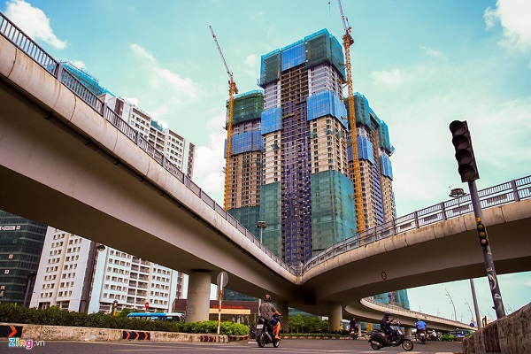 Ông Trần Quang Thắng, Viện trưởng Viện Kinh tế và Quản lý TP.HCM, từng nói với Zing.vn rằng thực trạng của đường Nguyễn Hữu Cảnh là một bài học đắt giá nhưng không thể sửa chữa. Trong ảnh là dự án Saigon Pearl do Công ty TNHH Vietnam Land SSG làm chủ đầu tư.