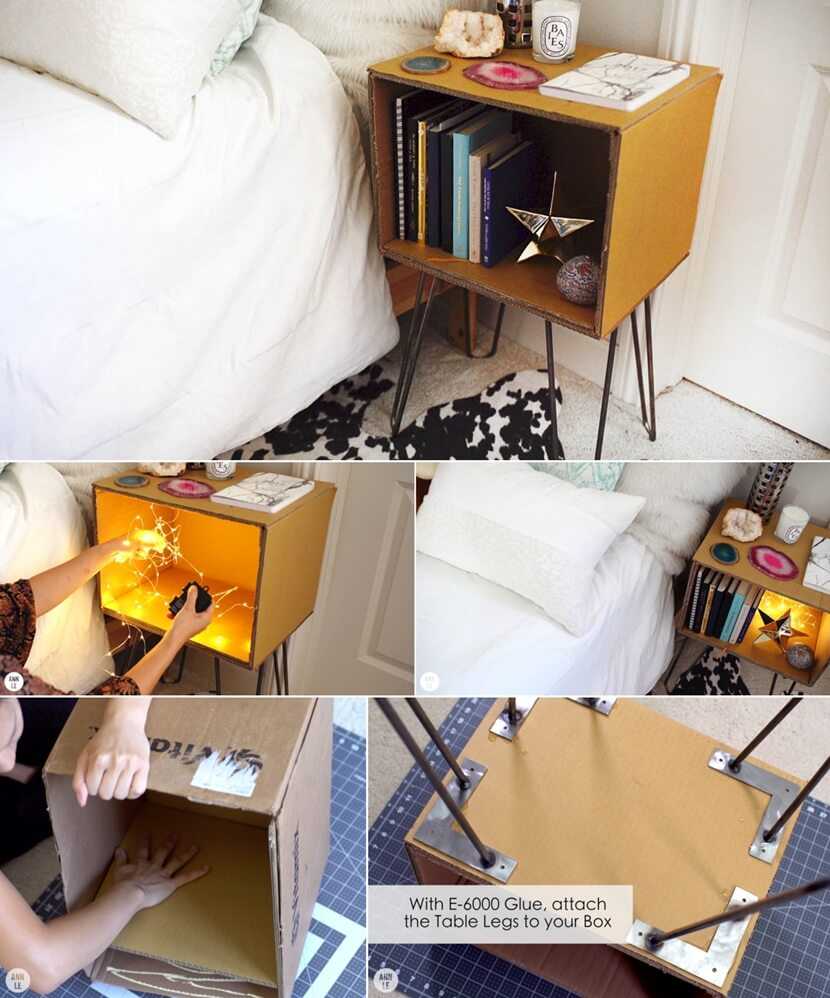 Gắn chân vào các hộp carton đặt chúng trong phòng để làm nơi lưu trữ hay trang trí nổi bật.