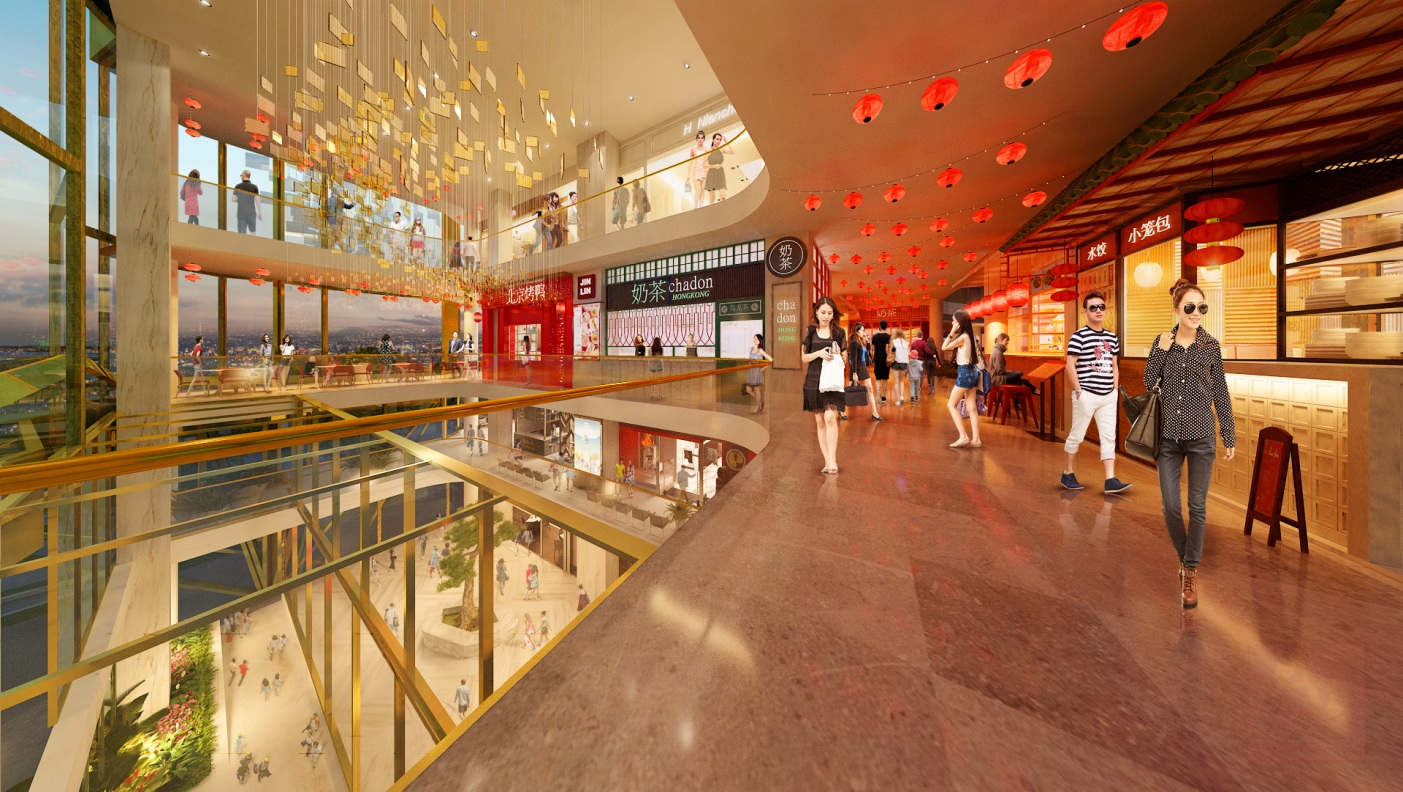 Điểm nhấn của dự án là khu ẩm thực trên tầng 5. Đây là nơi hội tụ tinh hoa ẩm thực của cả Chợ Lớn với hàng chục các nhà hàng ẩm thực trứ danh như vịt tiềm thuốc bắc, các tiệm Mỳ Gia, các loại chè thuốc bắc, các nhà hàng Dimsum, nhà hàng Tứ Xuyên, Triểu Châu…