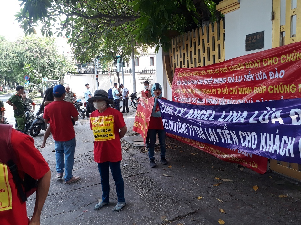 Tuy nhiên, sau khi hàng trăm khách hàng đóng tiền, góp vốn đầu tư thì phía Công ty Angel Lina không thực hiện đúng cam kết ký hợp đồng. Khách hàng nhiều lần căng băng rôn đòi đất, đòi lại tiền thì lãnh đạo công ty này trốn tránh.