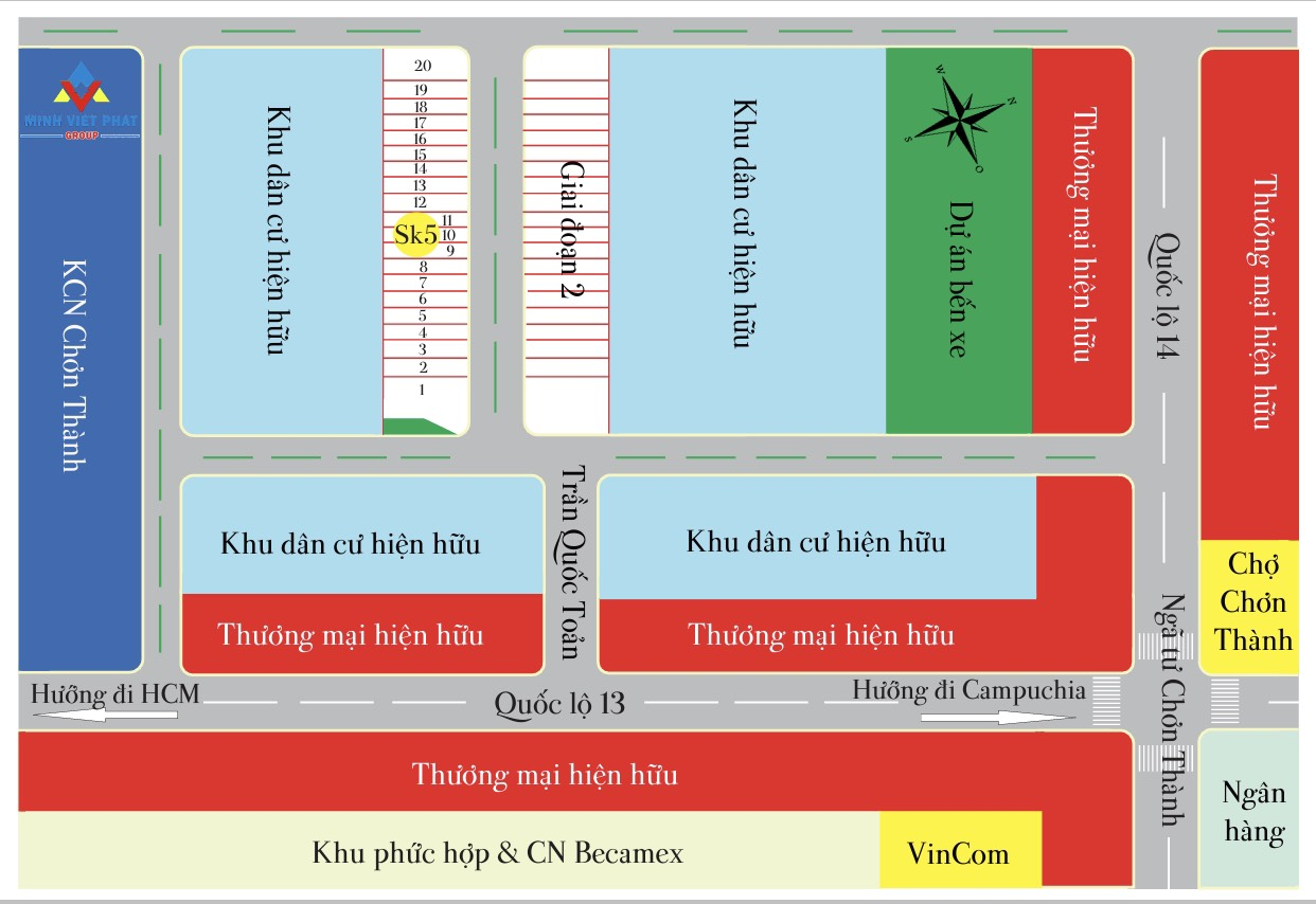 Nắm bắt được xu thế đầu tư và thị hiếu khách hàng cùng tiềm năng phát triển vượt trội của tỉnh Bình Phước nói chung của huyện Chơn Thành nói riêng, trong tháng 06/2019, Minh Viet Phat Group tung ra thị trường giai đoạn 01 của dự án Sky Center City 5 với khoảng 20 sản phẩm đất nền có vị trí đẹp nhất, pháp lý hoàn thiện nhất cùng kỳ vọng mang đến những cơ hội đầu tư và an cư tốt nhất cho khách hàng. Để sở hữu sản phẩm của dự án, khách hàng chỉ cần thanh toán từ 249 triệu đồng (50%), phần còn lại ngân hàng hỗ trợ vay vốn với lãi suất ưu đãi, thời hạn lên đến 25 năm.