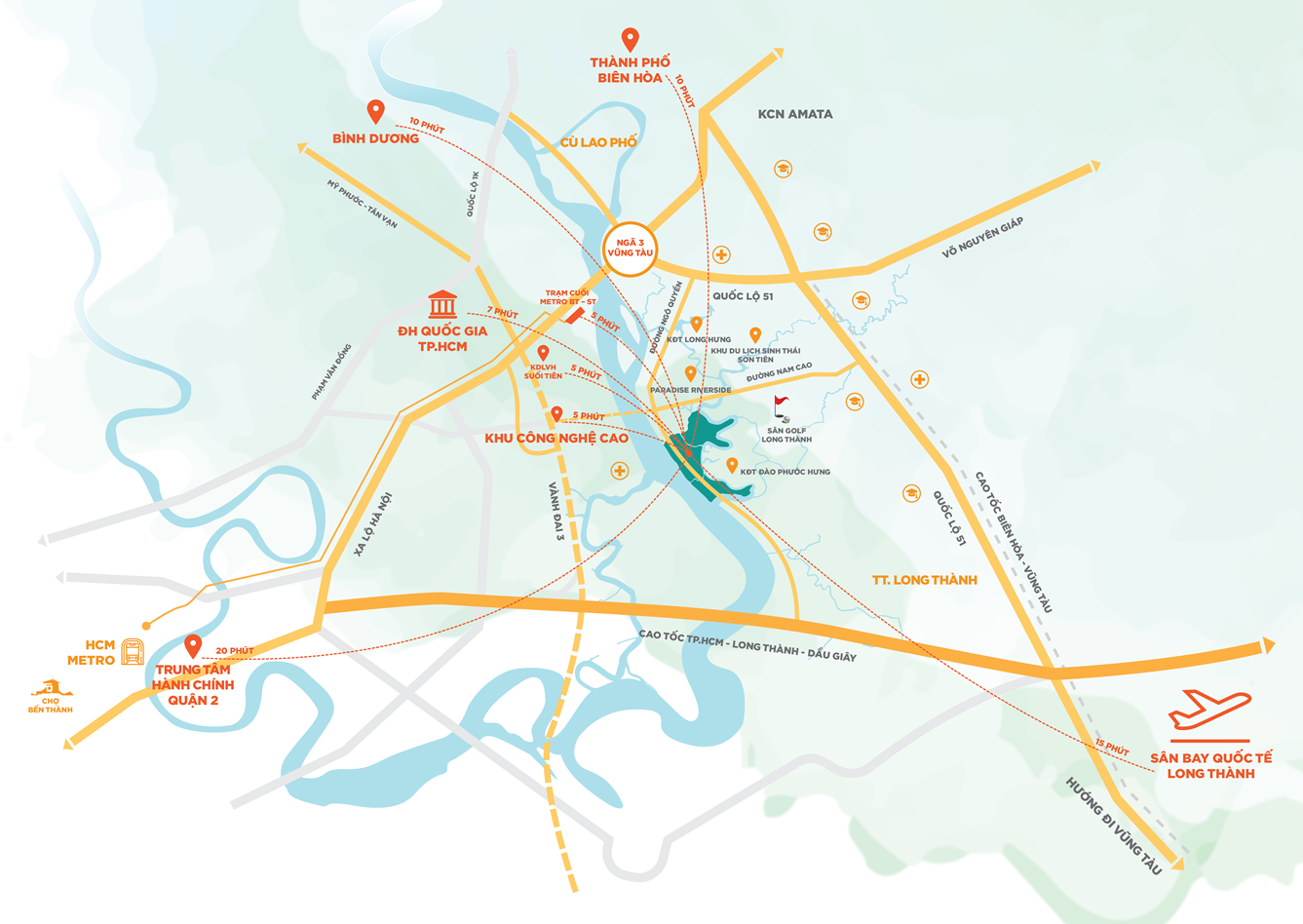 Với diện tích lên đến hơn 100 ha, không chỉ thừa hưởng các yếu tố sinh thái tự nhiên khi được bao quanh bởi hệ thống sông lớn Đồng Nai, sông Buông, sông Trong và các kênh rạch, dự án còn được qui hoạch theo mô hình sinh thái chuẩn mực bởi một nhà phát triển dự án có uy tín hàng đầu Việt Nam, kỳ vọng sẽ tạo ra một môi trường sống xanh và tiện ích hoàn chỉnh.