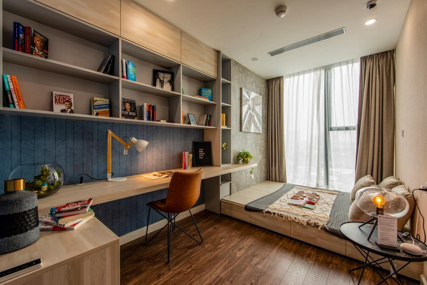 Bên cạnh các phòng chính, căn hộ 4 phòng ngủ ở Sunshine City Sài Gòn còn có phòng đa năng. Với thiết kế năng động, hiện đại, nơi này có thể truyền cảm hứng sáng tạo cho công việc của bạn, hoặc có thể là một thư viện thu nhỏ cho những phút giây thư giãn thoải mái.