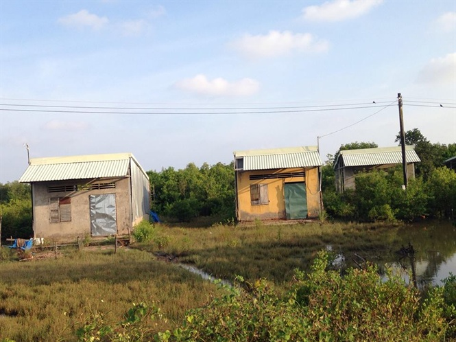 Hình ảnh đầu tiên chúng tôi bắt gặp khi tìm về khu tái định cư CWPD (Dự án tái định cư do Chính phủ Hà Lan tài trợ) là những ngôi nhà bỏ hoang đầy cỏ dại, đất đai hoang tàn không sức sống. Hỏi ra mới biết, đây là xóm nghèo nhất xã Tân Ân, dân sinh sống bằng việc bắt ba khía, đào sâm đất, bắt cá thòi lòi…