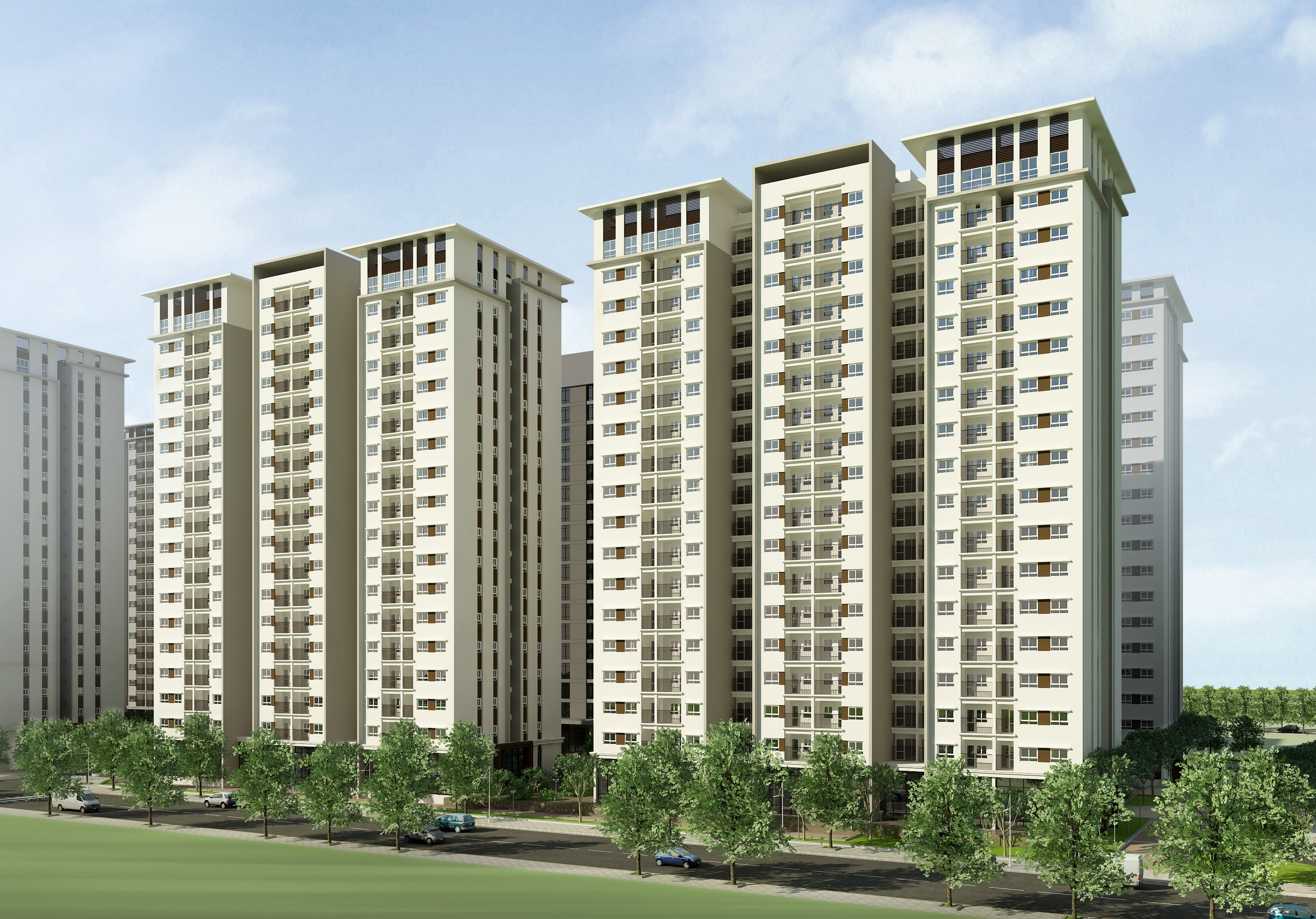 Trong đó, khu nhà ở xã hội có diện tích hơn 9.000 m2 với 6 toà nhà cao 11 tầng, tổng cộng gần 1.000 căn hộ với cơ cấu hộ đa dạng từ 51-77 m2, phù hợp với nhiều đối tượng; khu nhà ở thương mại có diện tích hơn 7.000 m2; khu cảnh quan, khu vui chơi, thể dục, thể thao có diện tích hơn 10.000 m2.