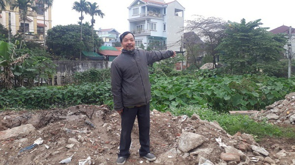 Ông Tráng bên diện tích ao gia đình ông ròng rã đi đòi lại nhiều năm nay