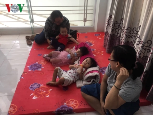 Chủ đầu tư nhà ở xã hội Khánh Hòa nhiều lần thất hứa bàn giao căn hộ, một số hộ dân bức xúc đã đưa con nhỏ, đồ đạc đến văn phòng của chủ đầu tư để ở.