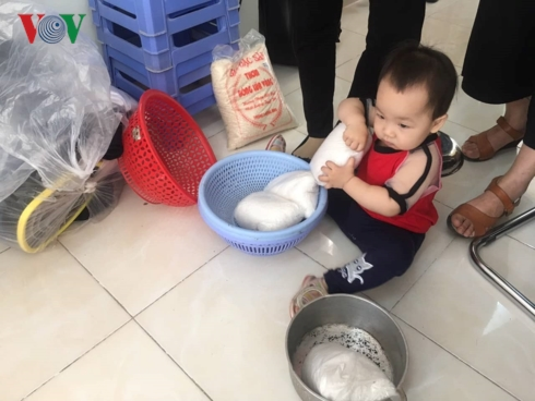 Người dân mang theo con nhỏ đến văn phòng dự án để ở.