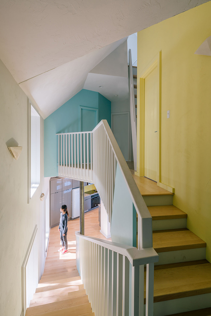 Không chỉ vậy, một số mảng tường tại các khu vực còn được sơn màu trắng, xanh, vàng tạo nên một vệt sáng như bước đệm trước khi đến một không gian khác.