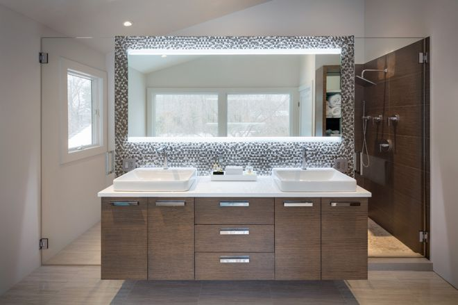 Hệ thống đèn chiếu sáng trong phòng tắm cung cấp cái nhìn sạch sẽ, sắc nét và hiện đại.